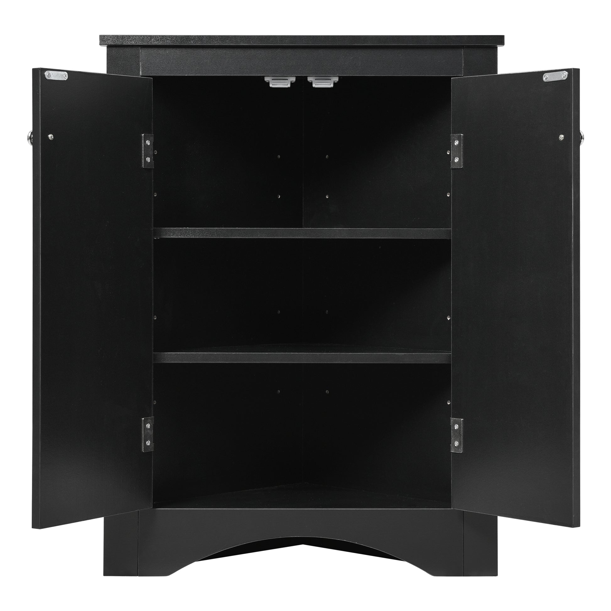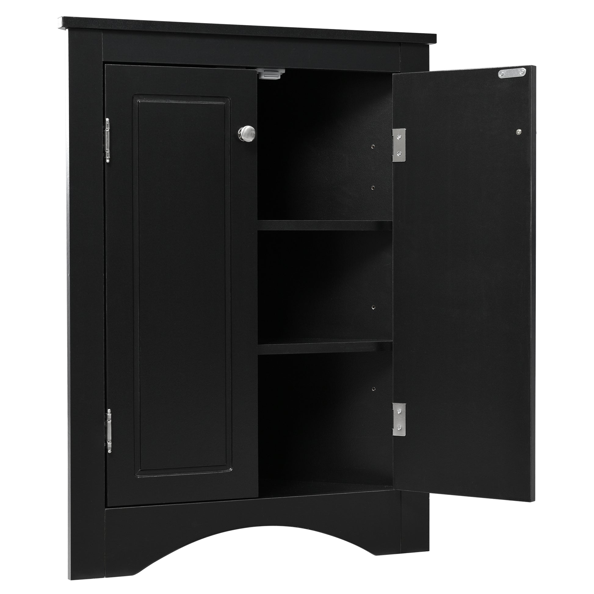 Black Triangle Bathroom Storage Cabinet with Adjustable Shelves, Freestanding Floor Cabinet for Home Kitchen
